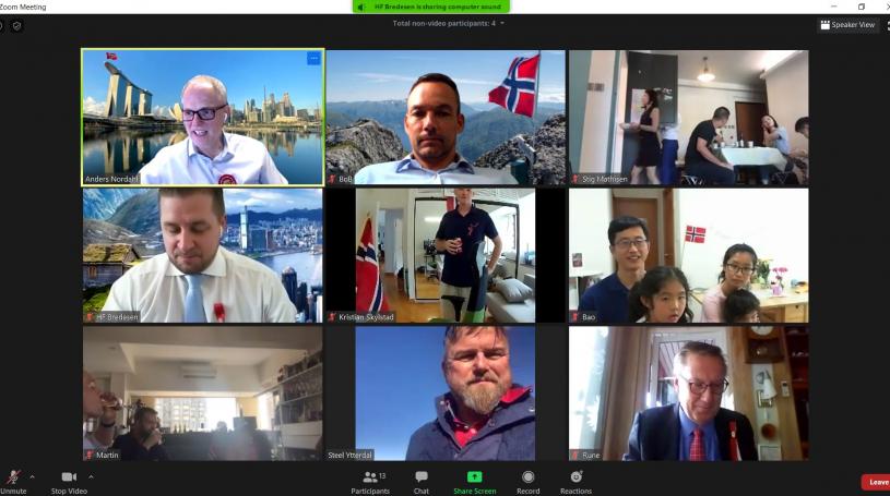 NorCham celebrated the day online over Zoom video conferencing with attendance from among others the Norwegian Ambassador in China, Ms. Signe Brudeset. Ms Brudeset honored us with a great speech which also included greetings from His Majesty Kong Harald.