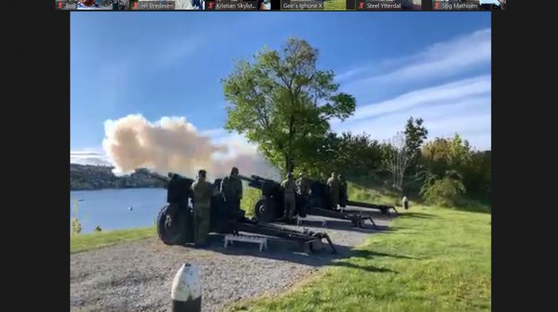 In addition to Ms Brudeset's speech we also got a speech from Mr Steinar Rishaug from the Norwegian Church Abroad (Sjømannskirken), a live stream flag hoisting and also a live stream cannon salute from Oscarsborg Fortress in the Oslo Fjord.
